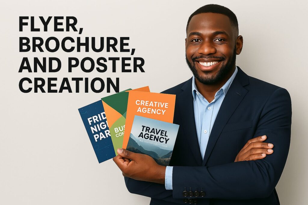 Design de flyers, brochures, affiches