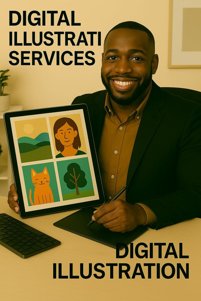 Illustrations personnalisées, artistiques et expressives pour vos livres, produits, posts ou projets uniques.